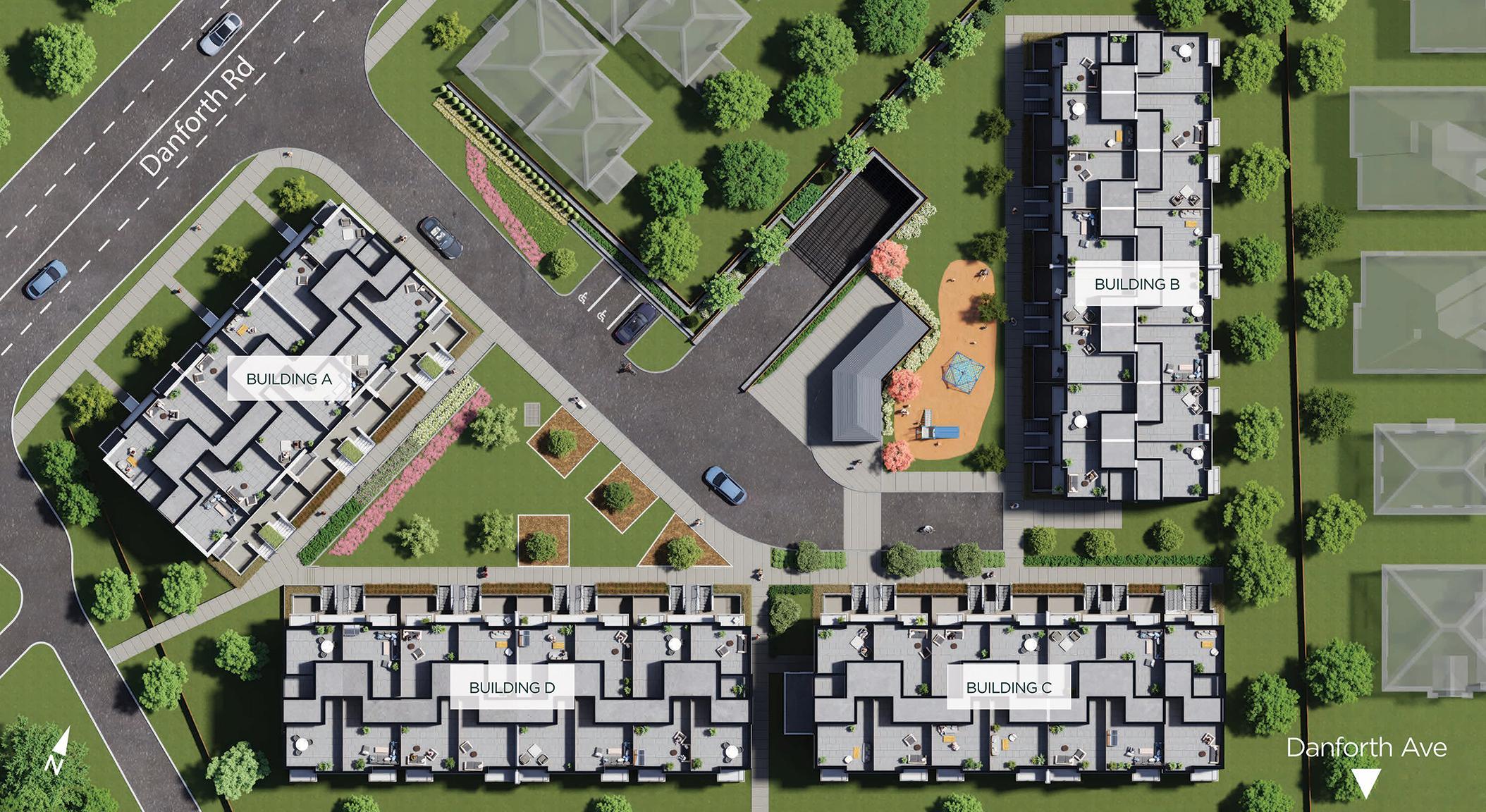 The Towns on Danforth offers residents a unique rental experience with private entrances, modern finishes, and beautifully landscaped courtyards. Families especially appreciate the on-site playground, providing a convenient and safe space for children to play.